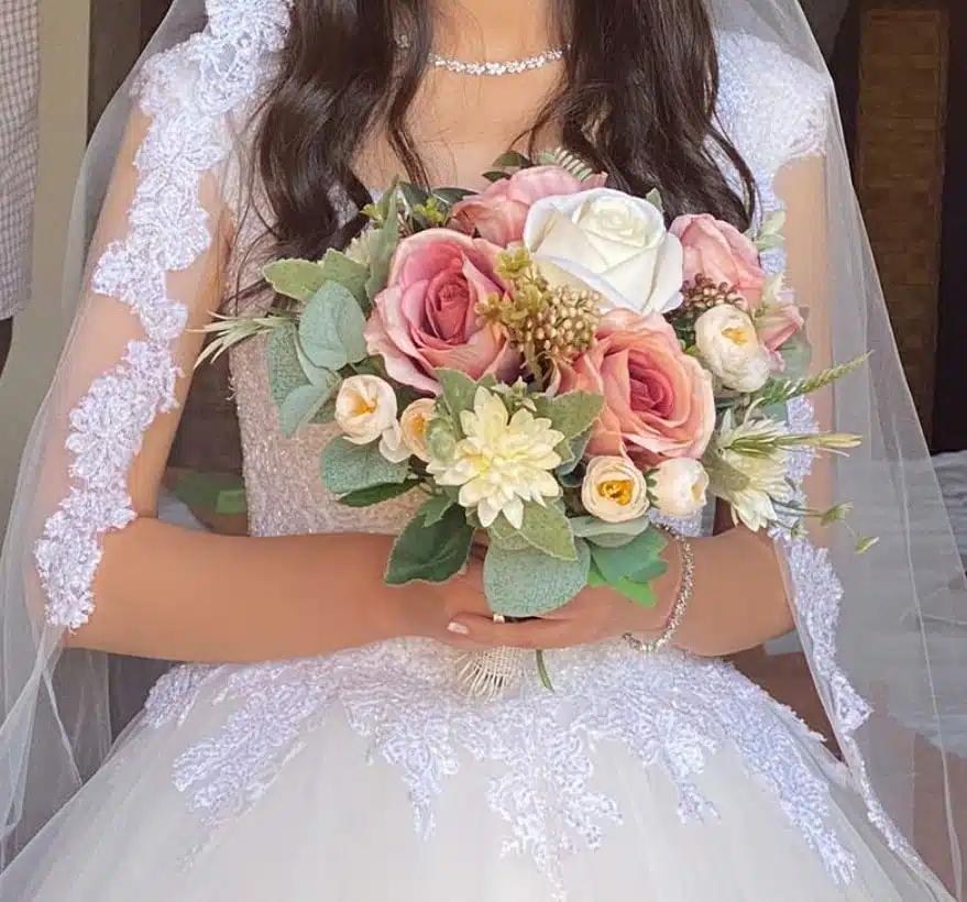 Silk flowers in a classic and simple floral design.