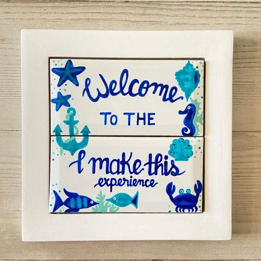 two handpainted tiles, customized, total size of the frame 25×25 cm