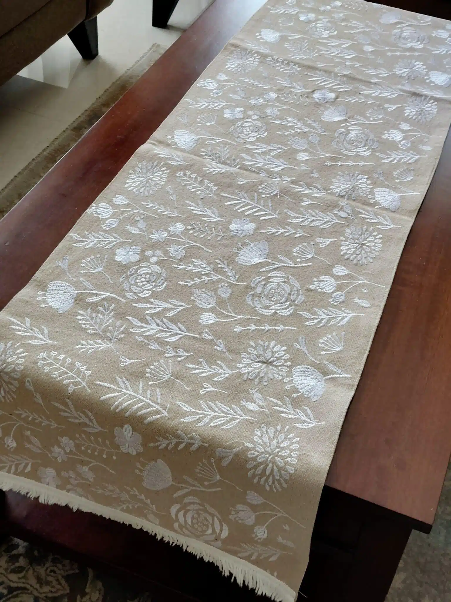 Machine embroidered table/bed runner.