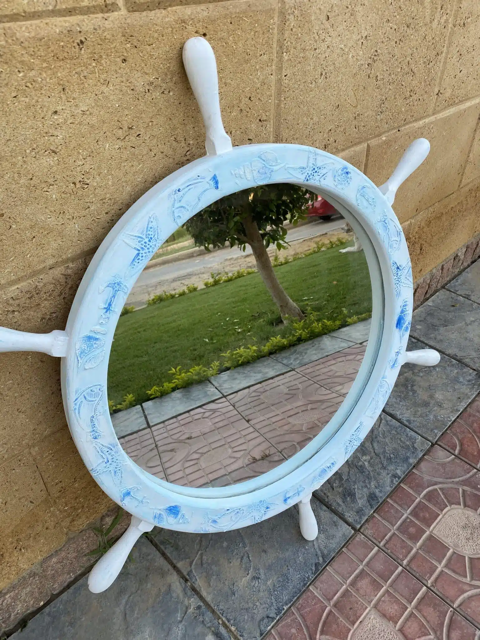 Wooden Summer Mirror Wheel Design and Coastal Patterns