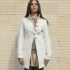 The Winter Crest is a sculpted white coat with silver buttons — timeless, graceful, softly radiant.