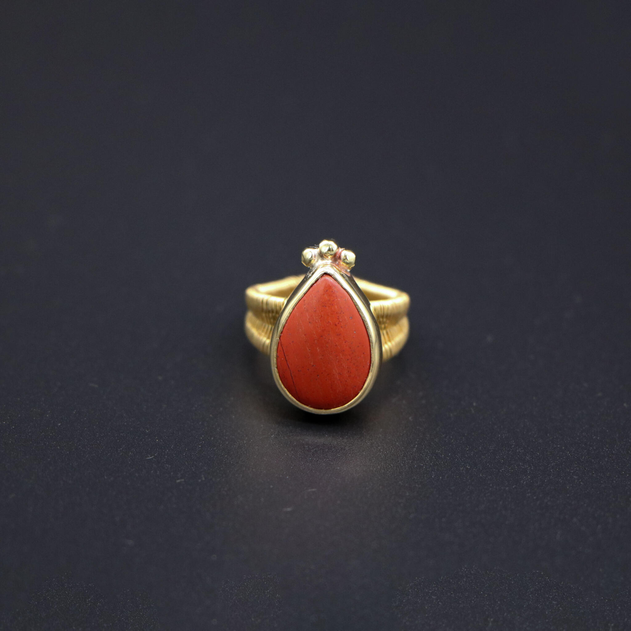 - Handmade wire wrapped brass ring with Red Jasper gemstone.