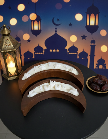 Wooden Crescent Scented Candle with flowers decorations