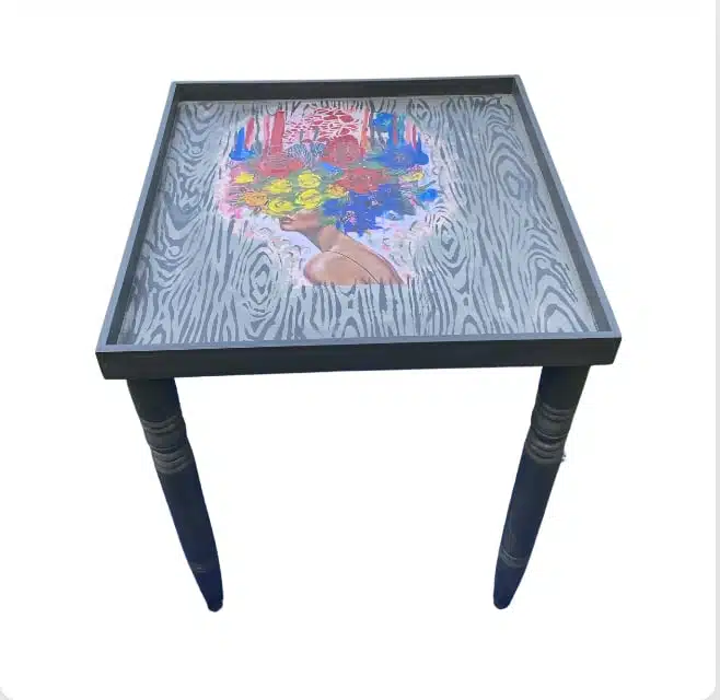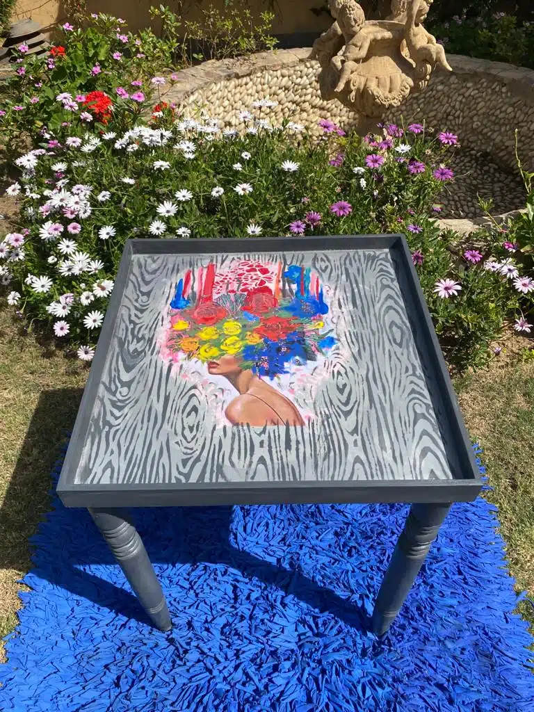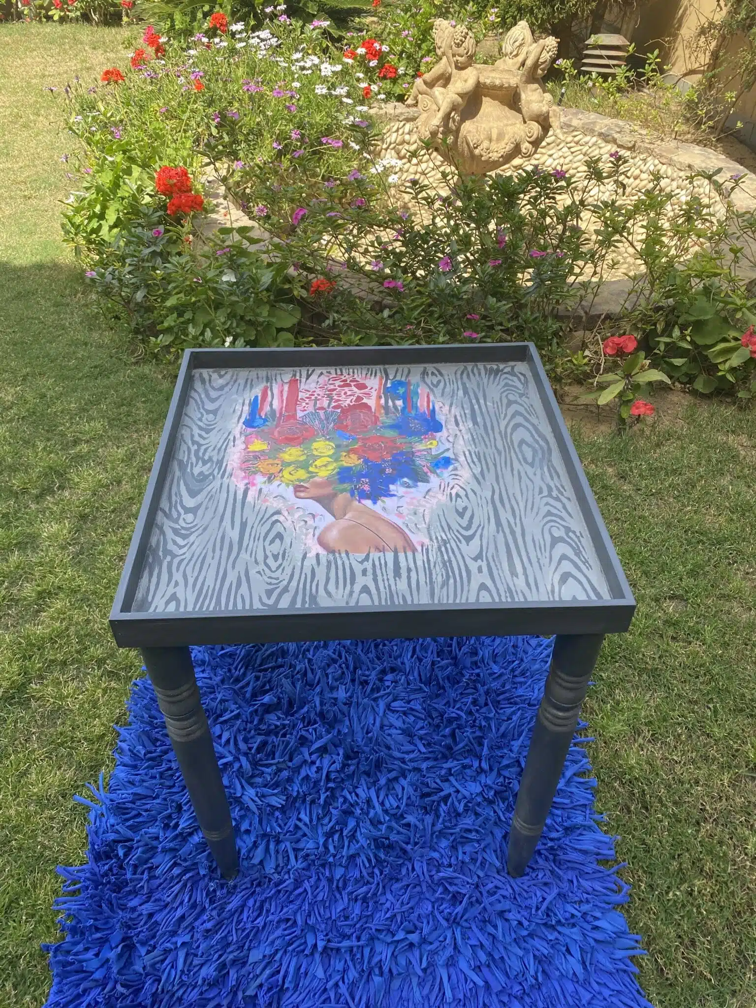 50×50 hand painted and decoupage table Zan wood Acrylic colors Top coat protection against water