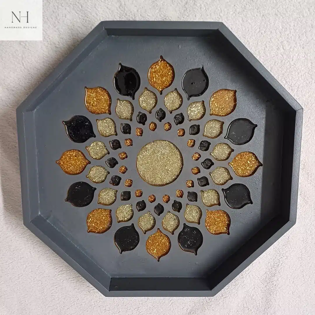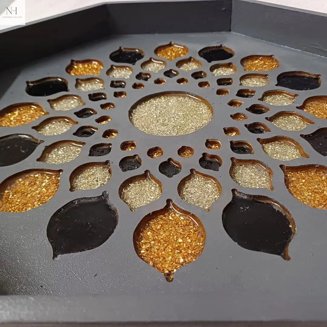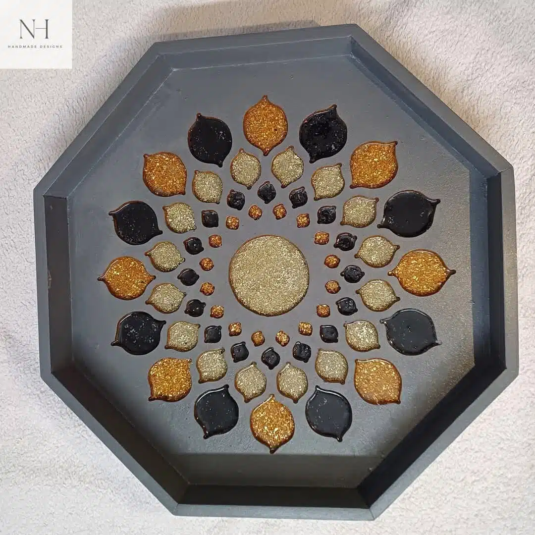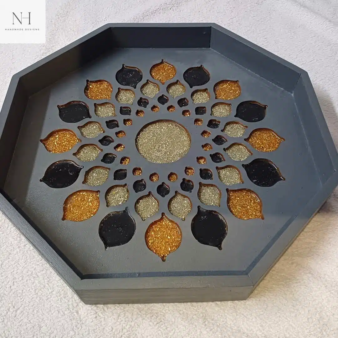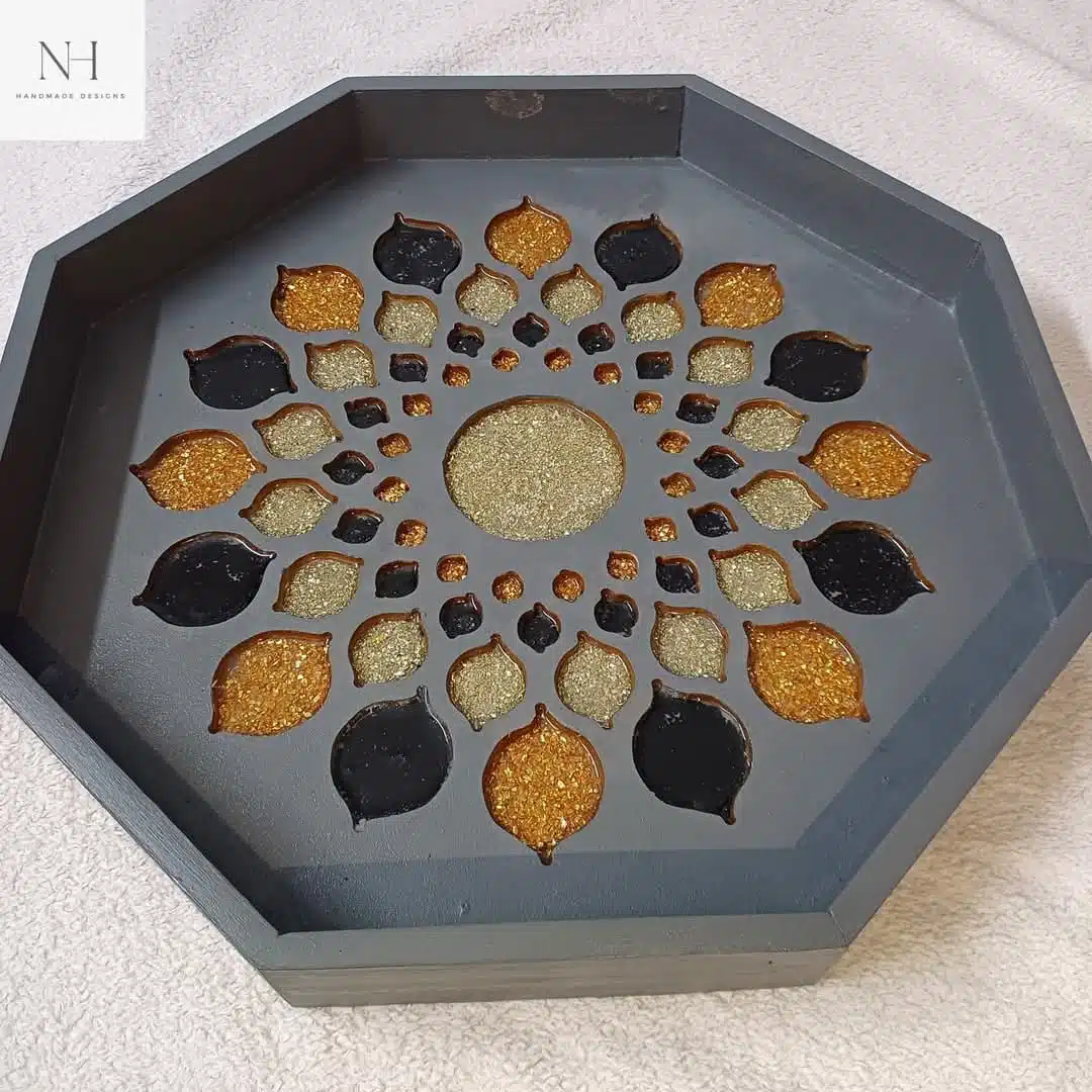 صينيه من الخشب مع الاحجار و الريزن