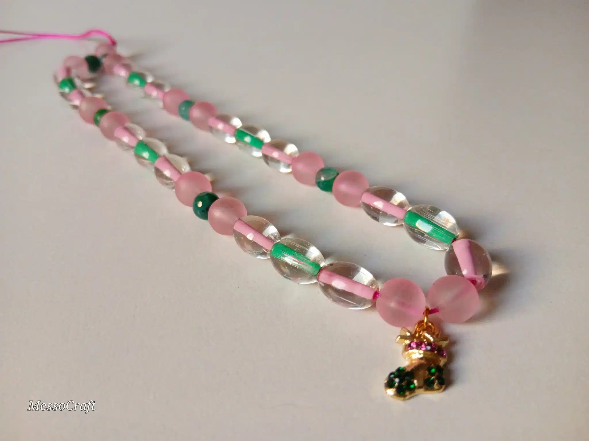 Mobile-chain in green / rose opal beads with xmas socks pendant