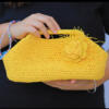 Yellow raffia Clutch made from raffia threads with a nice flower