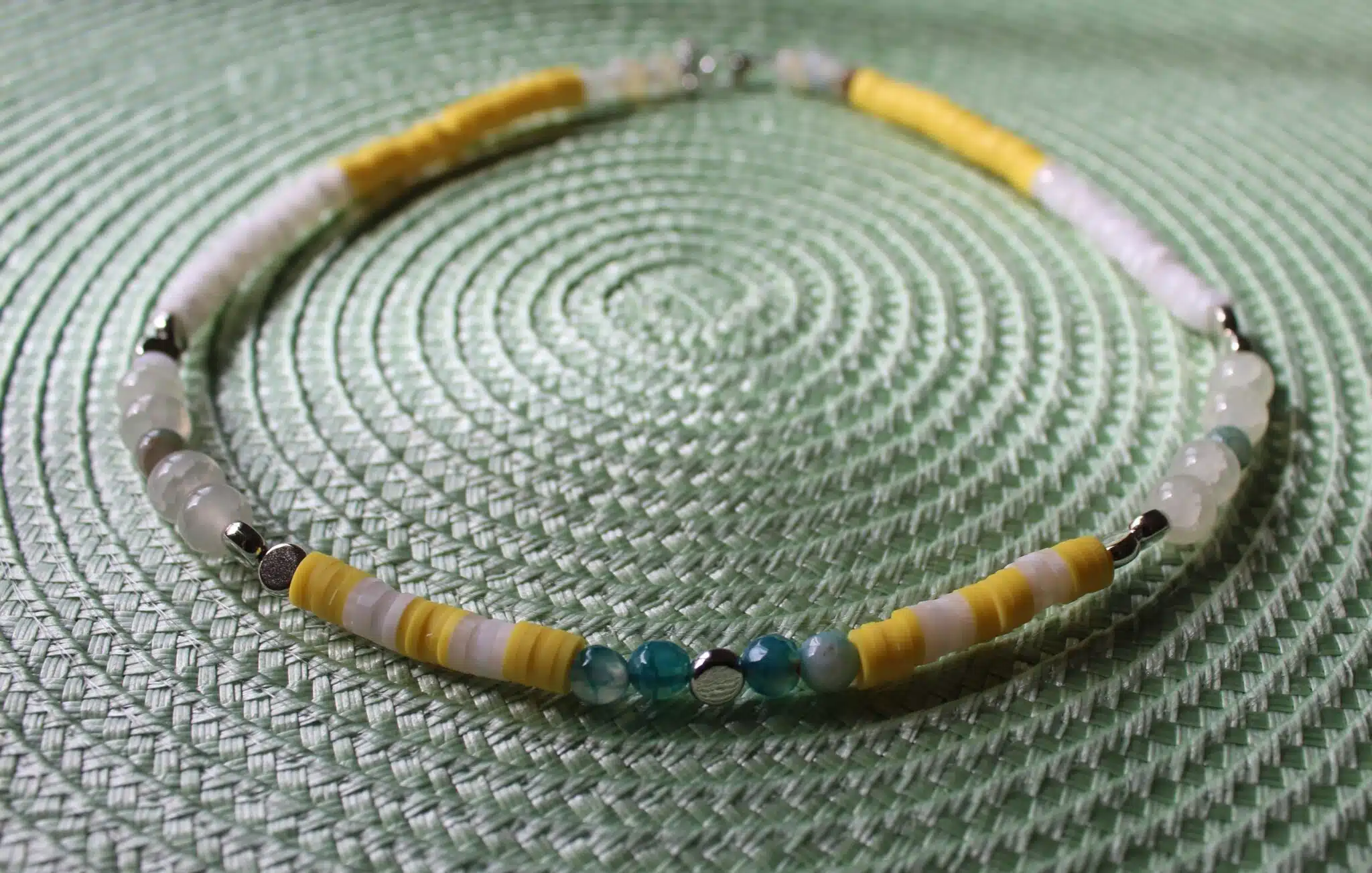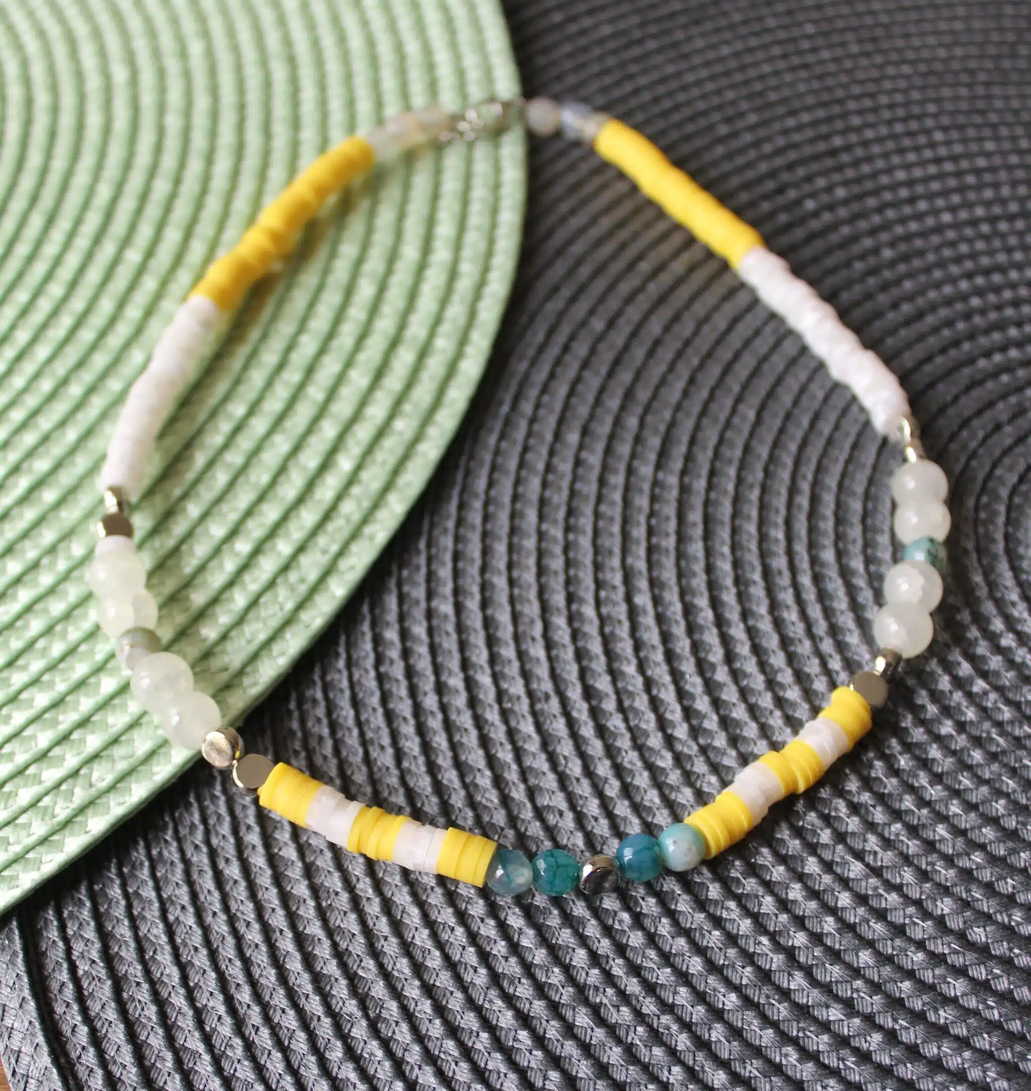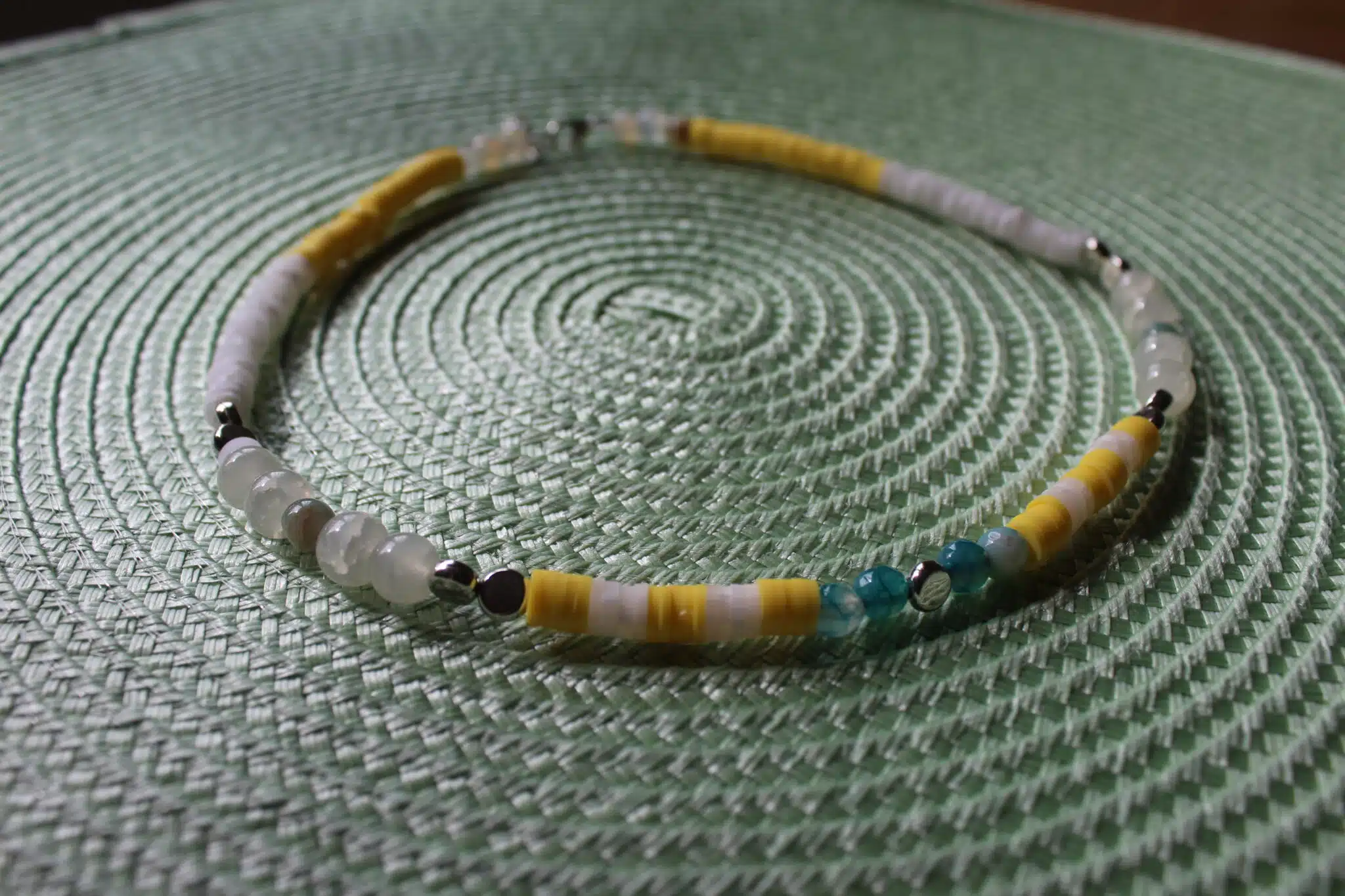Elegant artificial gemstone mixed with rubber beads and silver space beads