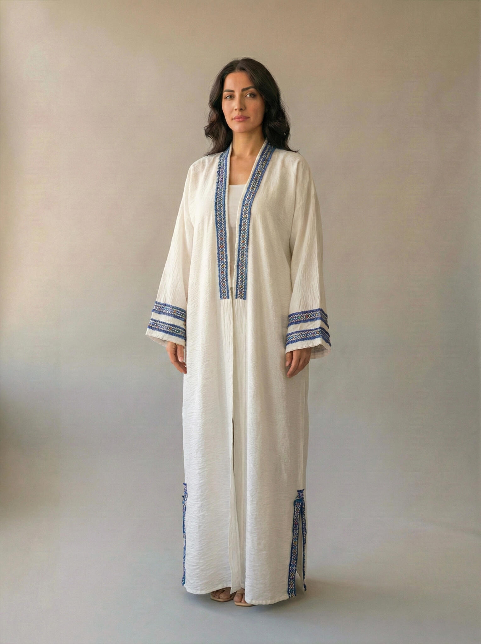 ✔ Design: Open front, wide sleeves, embroidered detailing